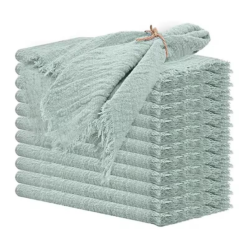 50pcs 32x32cm Wholesale Gauze Cotton Napkin sage green Reusable Tea Towel Wedding Party Christmas Table Decor Retro Burrs napkin