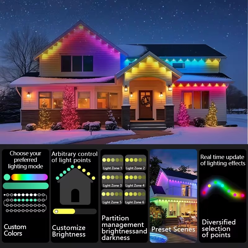 150ft 100ft 50ft Permanent Outdoor Lights Smart RGBIC Outdoor Lights with 75 Scene Modes String Lights with 90 LEDs for Garden