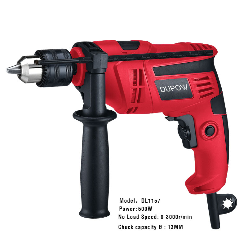 DUPOW professional hammer drill with 800 W can realize fast and efficient operation. Hammer and drill 2 mode in 1 for brick,wood, steel, concrete, masonry, etc.Drilling Cap Steel:10 mm Concrete:13mm Wood:25mm