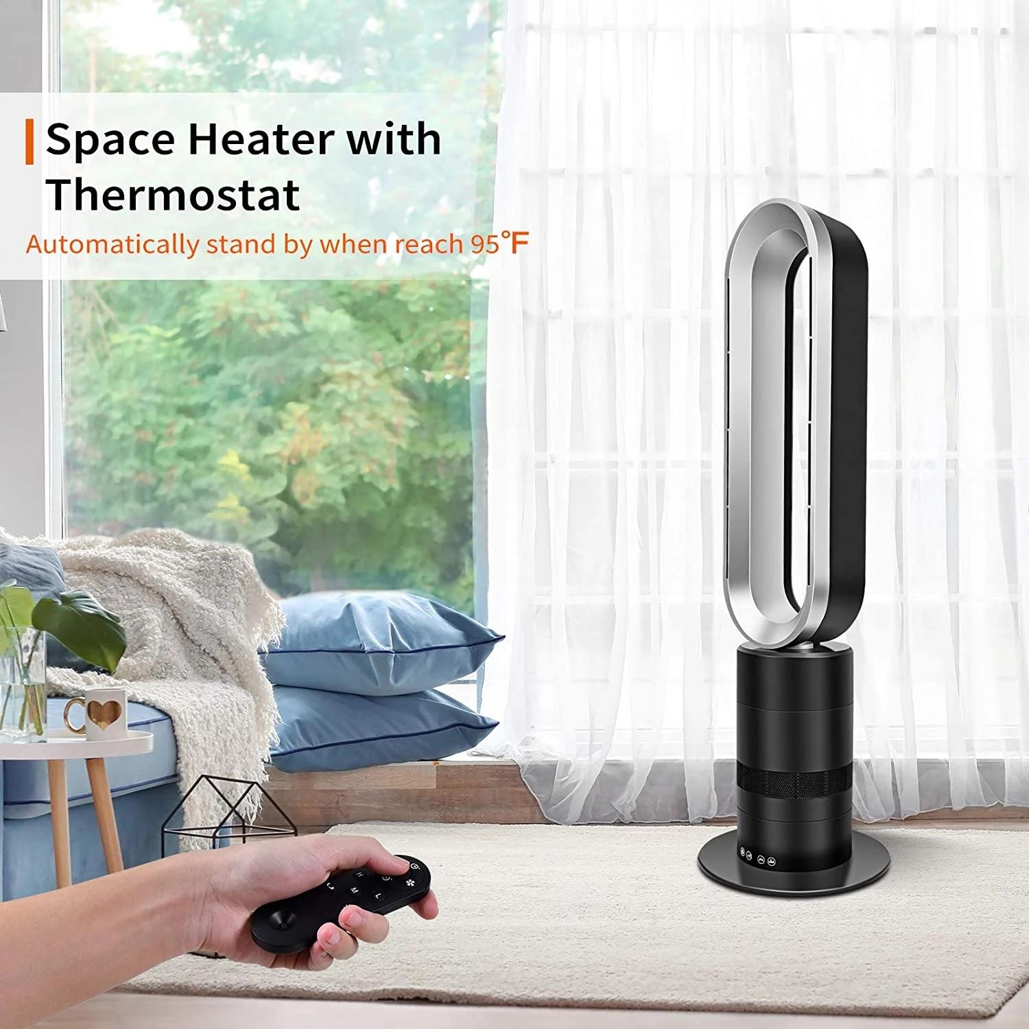 32/26 Inch Heater Bladeless Tower Fan Heater Fan Combo 9H Timer 10 Speeds With Remote Control Air Circulator Fan for Home Black