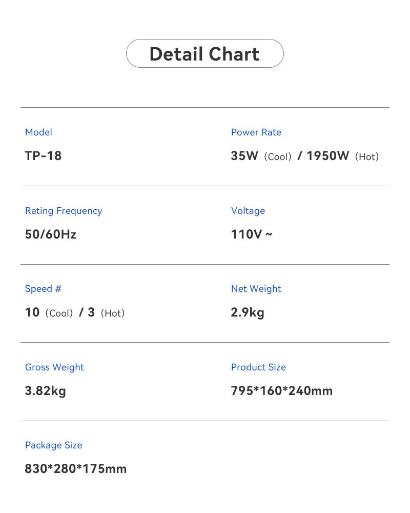 5.【Remote & Touch Control】The 20 ft remote control allows full control of all the unit’s functions (heating modes, timer, oscillation). LED display and touch control is also optional for your convienience.