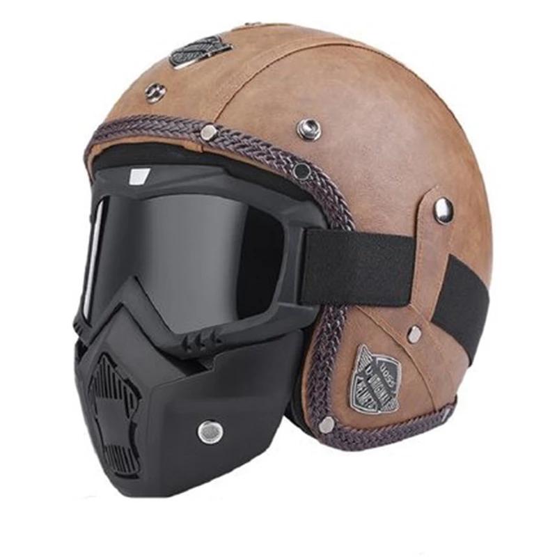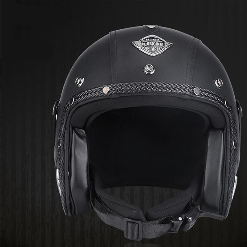 Adult Leather Helmets For Motorcycle Retro Half Cruise Helmet Prince Motorcycle German Helmet Vintage Motorcycle Moto