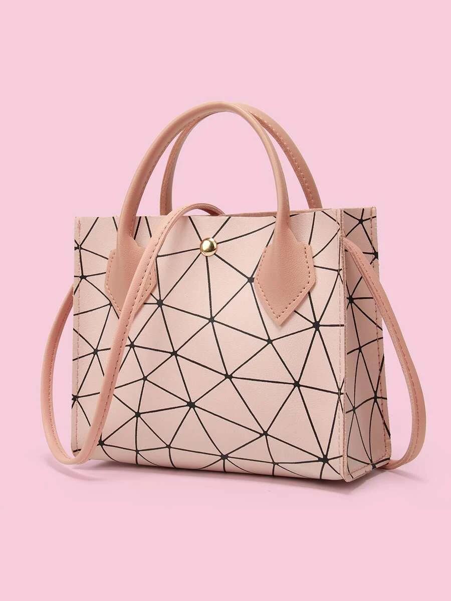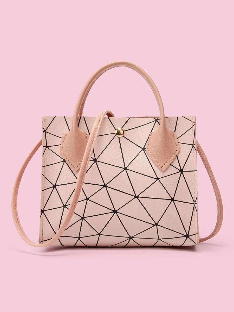 Color: Pink Strap Type: Double Handle Pattern Type: Geometric Style: Fashionable Bag Size: Mini, Small Type: Square Bag Composition: 100% Polyurethane Material: PU Leather