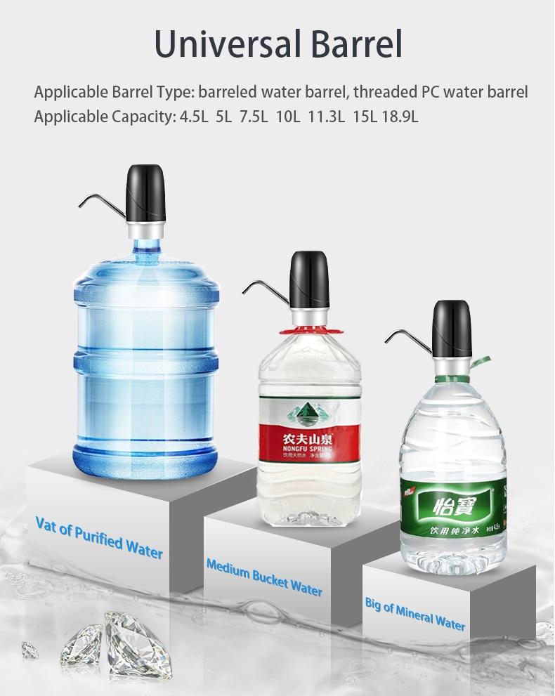 4. Built in USB rechargeable 800mAh battery, can be used for 30-40 days or around 4-6 bottles of 5 gallon water once full charged