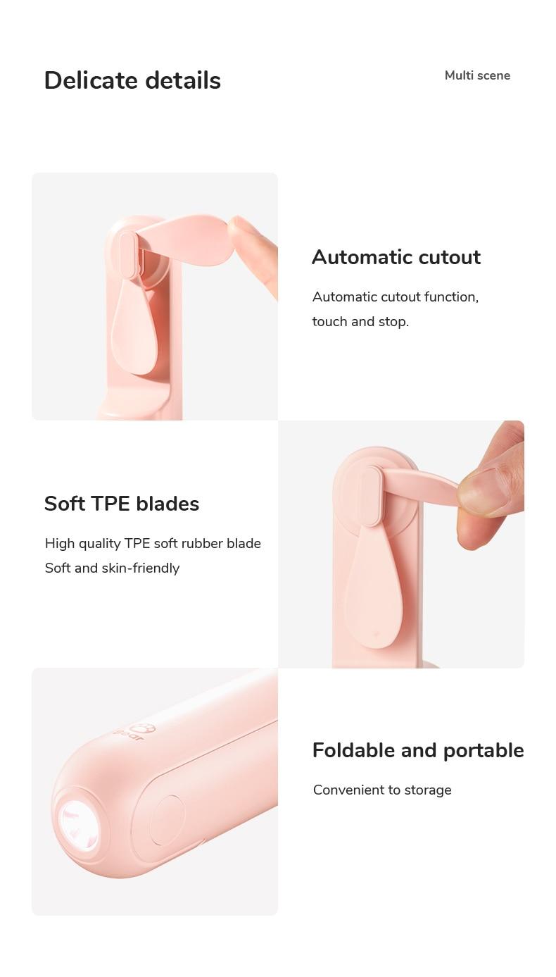 This rechargeable fan can hide the fan blade, small and easy to slide into your pocket and purse.