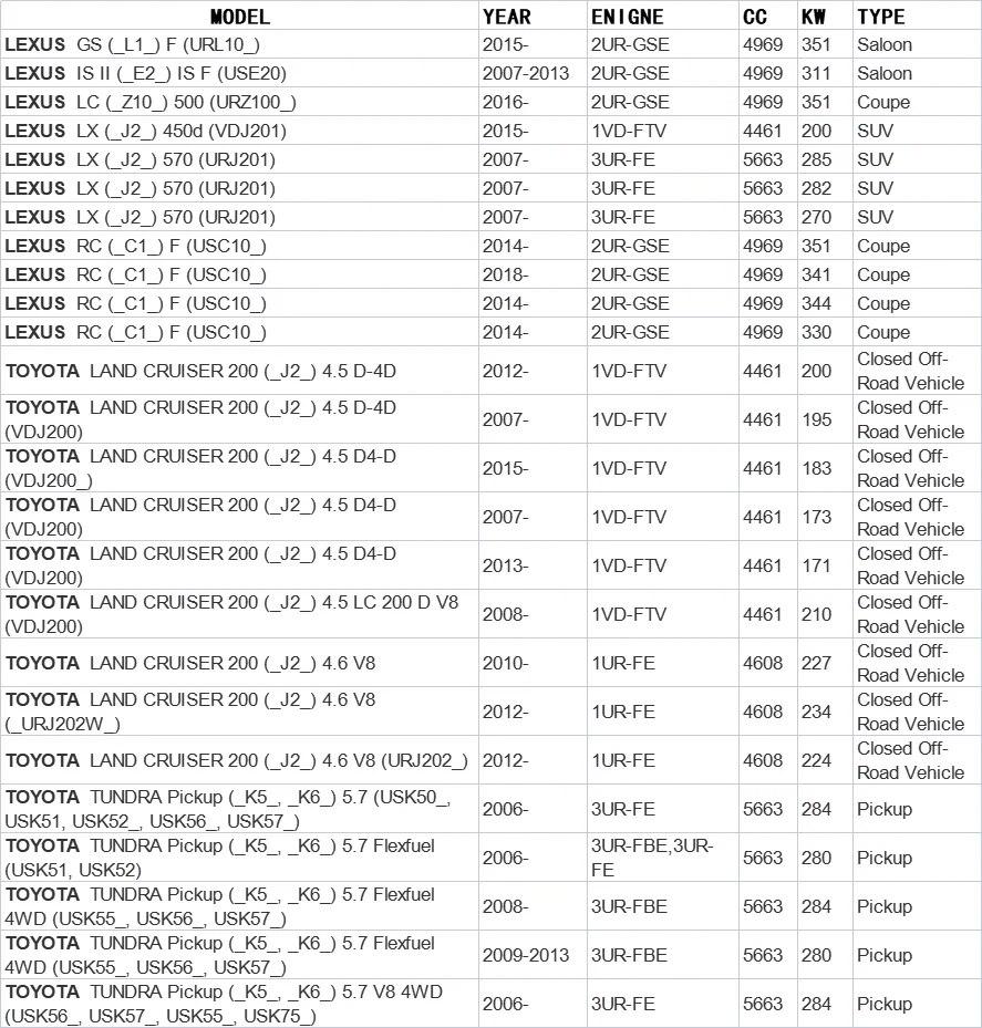 For TOYOTA : 0415251010