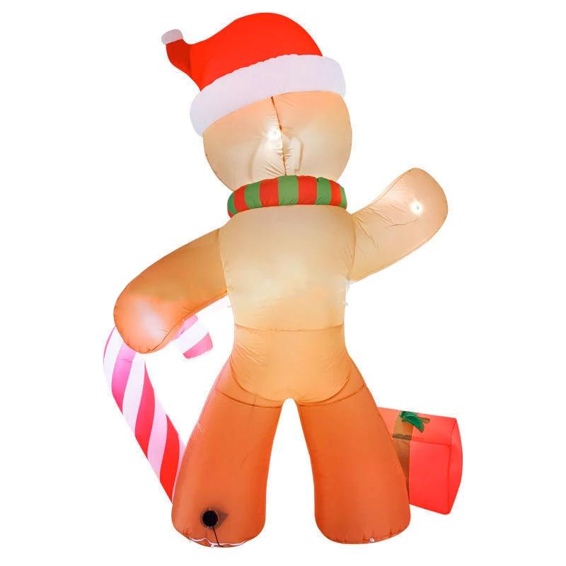 8FT Christmas Inflatable Gingerbread Man with Candy Cane LED Lighted Blow Up Decoration Outdoor Garden Xmas Holiday Party Décor