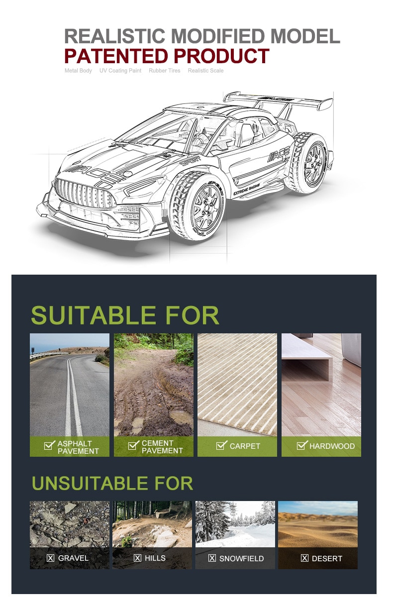 2. 4 Channel 2-Wheel Drive, Back and Forth, Turn Left and Turn Right, Can Realize Realistic and Cool Drift Action;