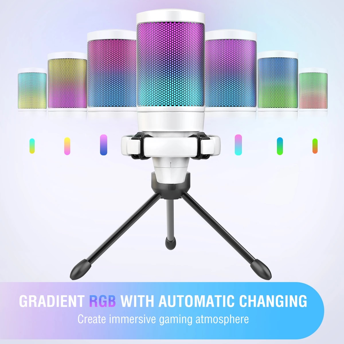 Use the convenient tap-to-mute functionality to prevent an audio accident along with the help of the RGB mic status indicator. If the light is on, the mic is active, if the light is off, the mic is muted,just tap the top of the microphone.