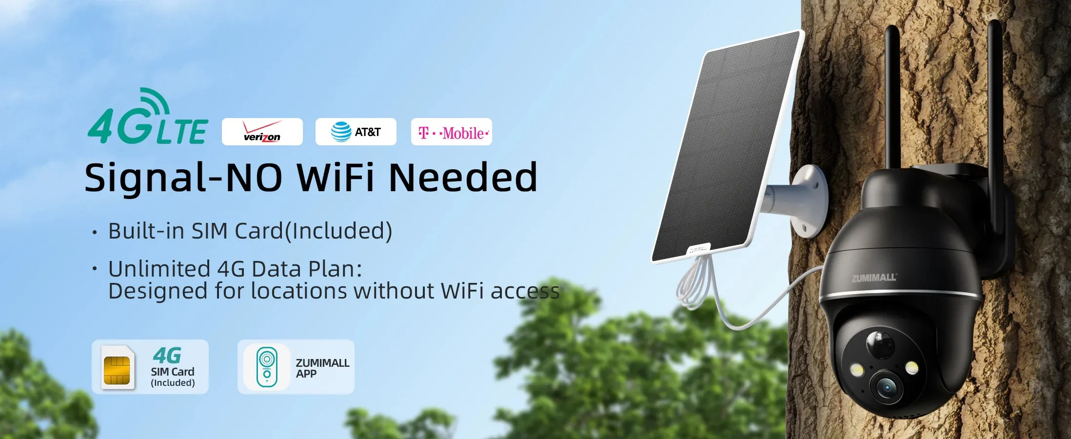 ZUMIMALL 4G LTE Cellular Solar Security Camera Outdoor, No WiFi,Solar Powered with Color Night Vision,SIM Included