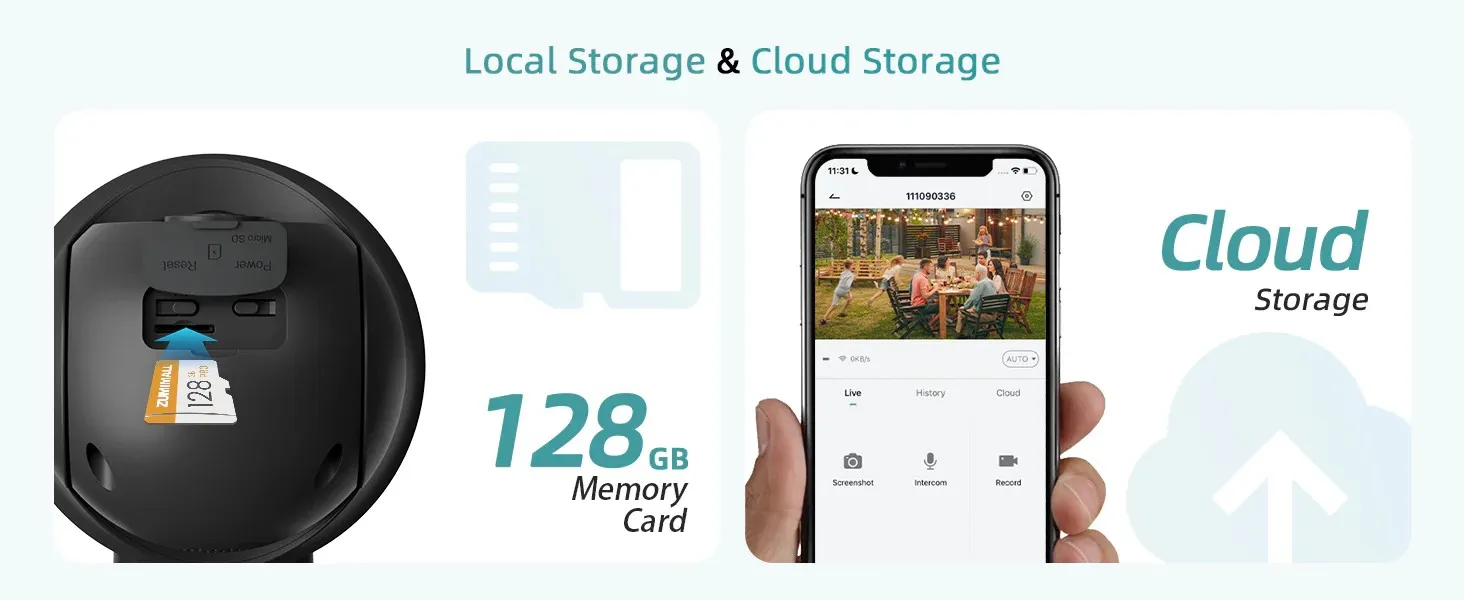 With 360 ° pan, 120° tilt, and 4X digital zoom, this 3MP/2K camera offers a wide viewing angle and clear footage, enhanced by color night vision capabilities.