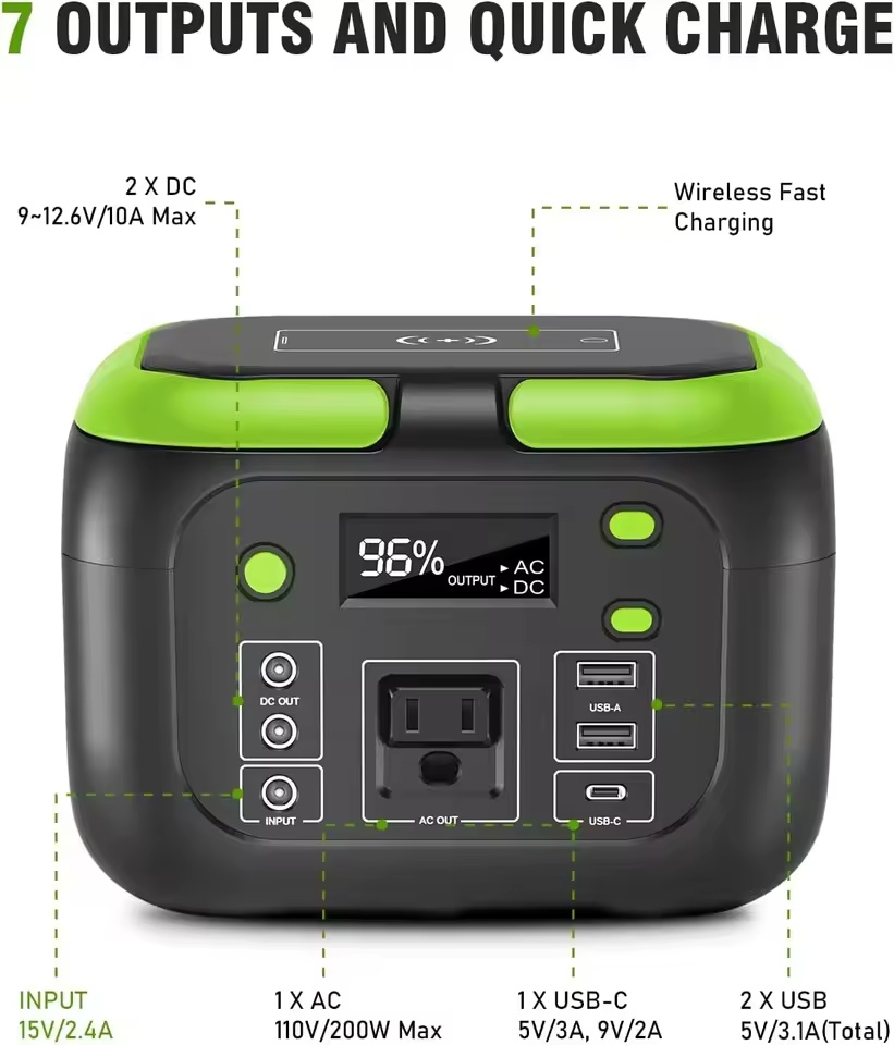 Please note: The 600 watt and 120 watt power stations do not have wireless charging.