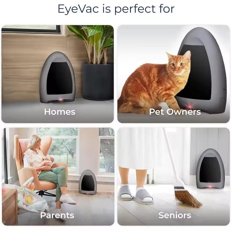PERFECT FOR PET OWNERS & PARENTS: the EyeVac can suck up all pet food, pet hair, kitty litter, dirt, and more.
