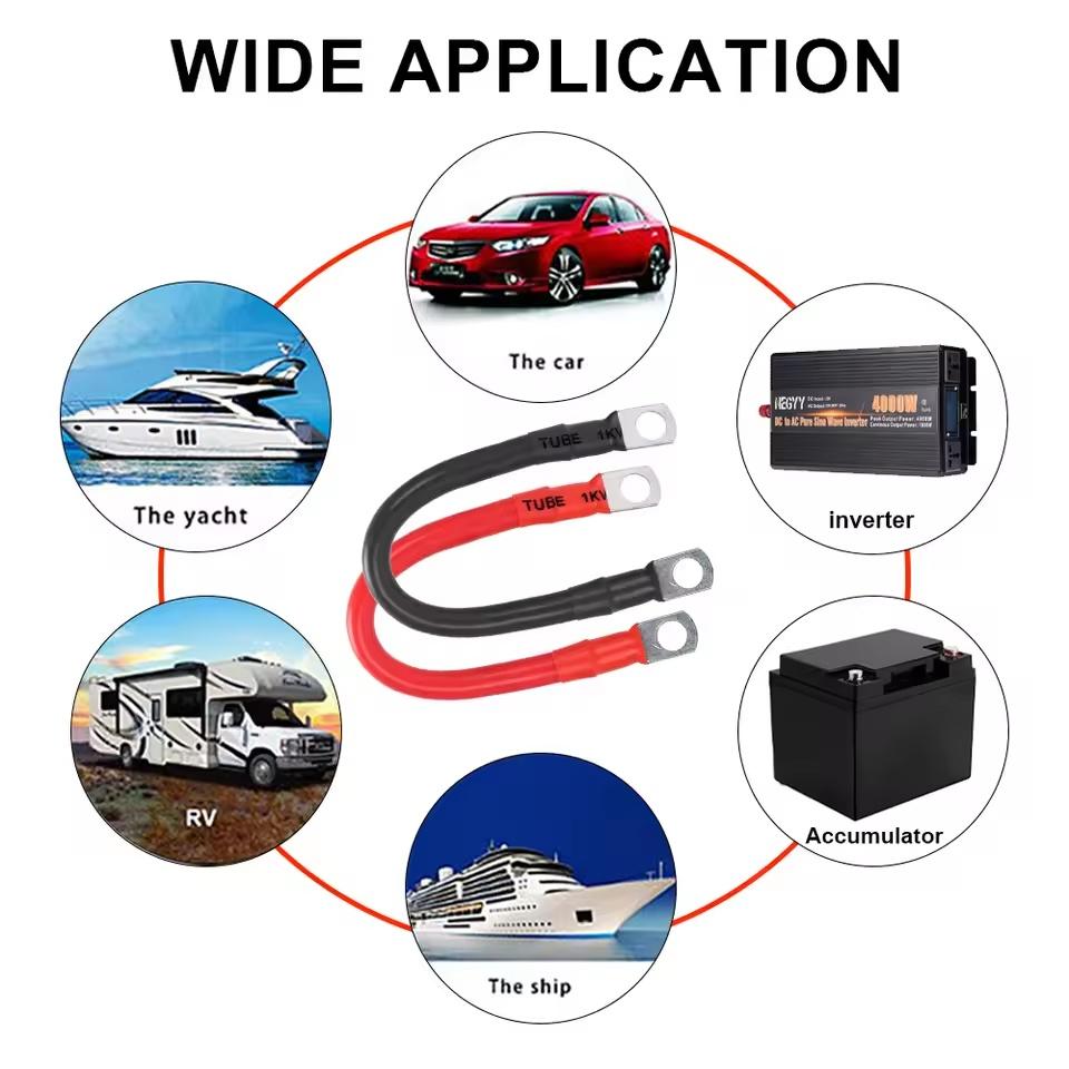 Widely used: compatible with most battery pack and inverter connection, suitable for cars, RV, trucks, yachts, batteries, energy storage batteries, inverters and other links, very soft and durable, wiring is very convenient