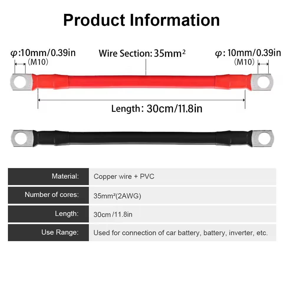 Products include: 1 pair (red and black) 50cm 4AWG PVC pure copper cable (3/8, M10 terminal)