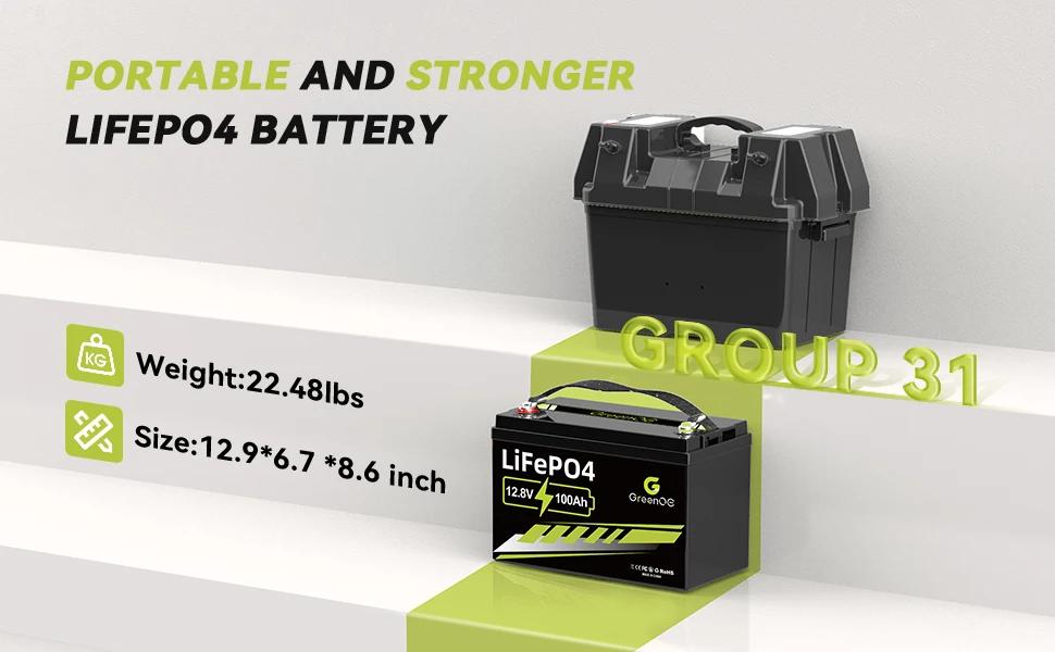 12V 100Ah LiFePO4 Battery Group 31 With Built-in 100A BMS, 15000 Deep Cycles Rechargeable Lithium Battery Prefect for Solar Syst