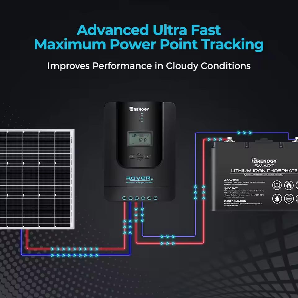 Renogy Rover 40A MPPT Solar Charge Controller, 12V/24V DC, Auto Adjust, LCD, Fits Gel/Sealed/Flooded/Lithium