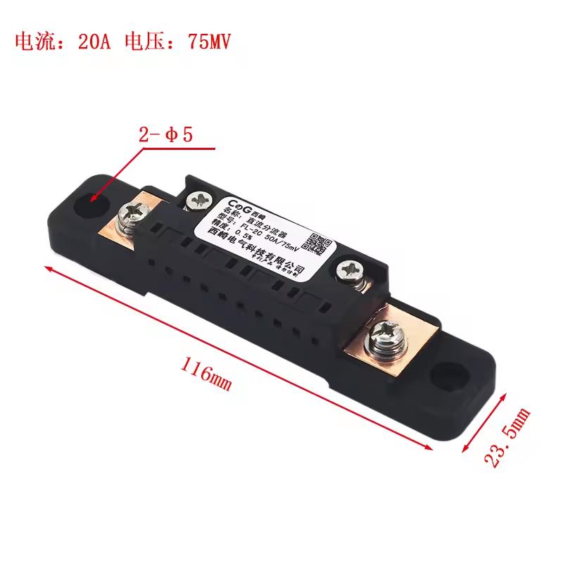 Accuracy Class: 0.5nOperating Temperature: -40°C ~+60°CnVoltage Drop: 75mVnHeating Under Load: Temperature rise tends to be stable, current below 50A ≤ 80 ℃, rated current above 50 A ≤ 120 ℃nMaterial: Welded with one piece of purple copper and manganese copper alloynDesign and Style: High temperature resistant flame retardant shell for fast heat dissipationnUsage and Purpose: Expanding the current measurement range of a DC 75mv magnetoelectric millivoltmeternTypical Adaptive Scenario: Ideal for various DC circuits requiring precise current measurementnShape or Size or Weight or Quantity: Compact and lightweight design, easy to installnPerformance and Property: Continuous long time working, low power consumption, and low temperature risenParts and Accessories: Includes 1pcs* FL-2C Shuntnnn|Fl 2c|nn**Precision Measurement and Durability**nThe CG FL-2C 10A-100A 75mV Digital Voltage Meter DC Analog Ammeter Current Shunt Resistor is a testament to precision and reliability. With an accuracy class of 0.5, this shunt is designed to deliver highly accurate readings, ensuring precise measurements in your DC circuits. The shunt is engineered to withstand a wide operating temperature range from -40°C to +60°C, making it suitable for use in various environments. Its robust construction features a high temperature resistant flame retardant shell, which not only enhances its durability but also facilitates efficient heat dissipation, minimizing the impact of heat on its performance.nn**Versatile Application and Ease of Installation**nThis ammeter shunt manufacturer offers a broad range of applications, from small-scale hobbyist projects to professional electrical installations. Its versatility is further enhanced by the availability of custom voltage drop options, allowing users to tailor the shunt to their specific needs. With easy installation and a lightweight design, the FL-2C shunt can be seamlessly integrated into your existing DC circuitry without the need for extensive modifications or additional equipment. Its compact form factor ensures that it can fit in tight spaces, making it an ideal choice for space-sensitive applications.nn**Reliable Performance and Low Maintenance**nThe FL-2C shunt is built to withstand the demands of continuous long-term operation, with low power consumption and a low temperature rise. Its robust construction ensures vibration and shock resistance, making it a reliable choice for various electrical scenarios. The shunts high-quality materials, including the purple copper and manganese copper alloy, are designed to maintain a stable heating under load, ensuring that the temperature rise remains within safe limits, regardless of the current being measured. Whether youre a DIY enthusiast or a professional electrician, this ammeter shunt manufacturers product is your go-to solution for expanding the measurement capabilities of your DC circuits.