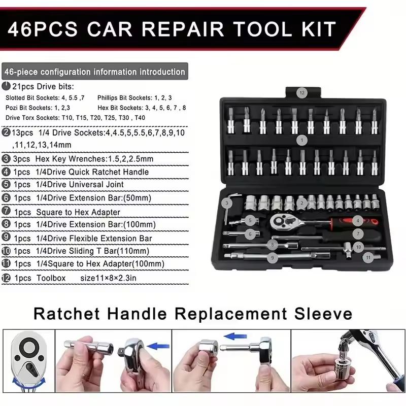 Drive Socket Set Ratchet Wrench Set Car Tool Kit, Bit Socket Wrench Set Metric Mechanic Tool Set Car accessories