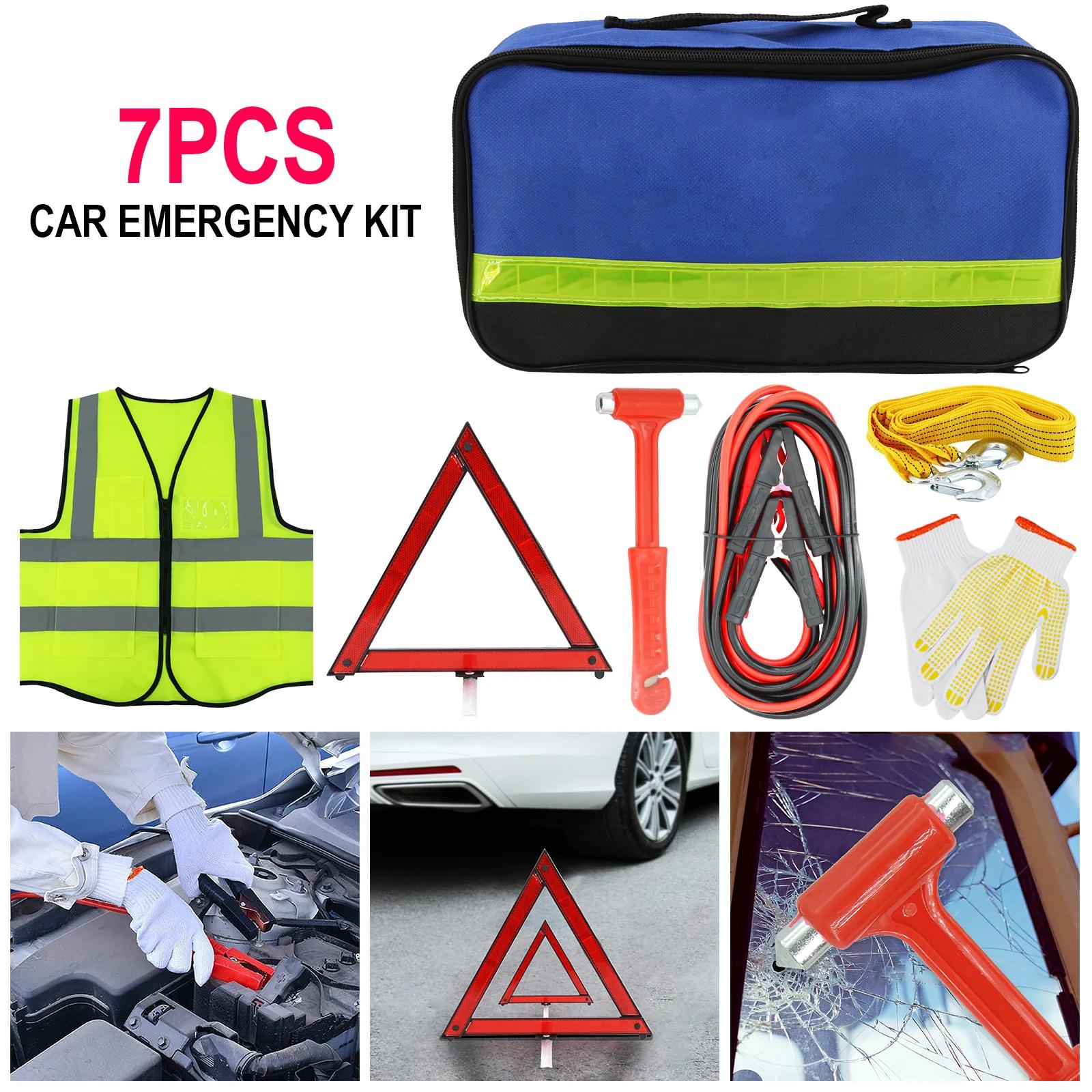 Car Emergency Roadside Assistance Kit Jumper Cable Tow Strap First Aid Survival Supplies Pack Motorist Self-Defense Satefy Tool