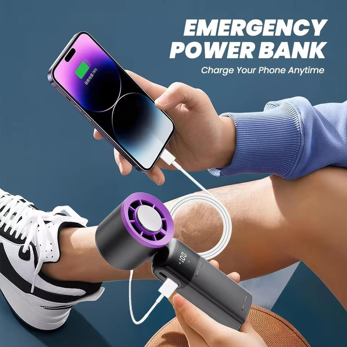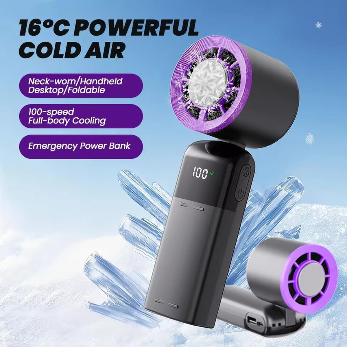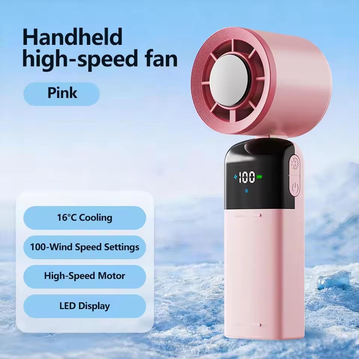 Handheld Mini Ice Compress Turbofan with Lanyard LED Digital Display Quite and High-Speed USB Rechargeable Air Cooling Fans